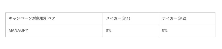 ディセントラランド(MANA)の取扱いを記念して、MANA/JPYの取引手数料無料キャンペーンを開催します。