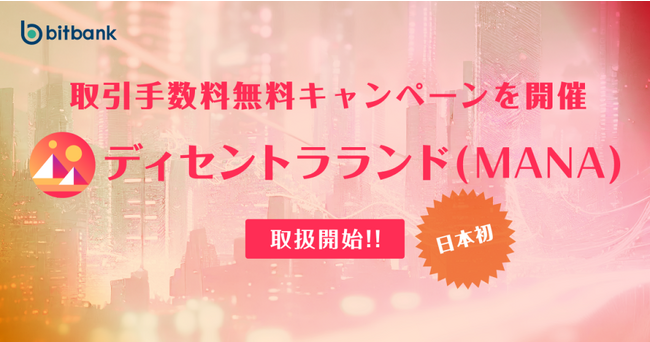 ビットバンク株式会社(本社:東京都品川区、代表取締役社長:廣末紀之、以下当社)は、本日よりディセントラランド(MANA)の取扱いを開始いたしました。