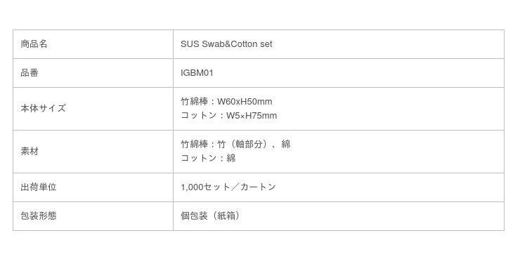 ・竹綿棒&コットンセット『SUS Swab&Cotton set』:https://sus.i-goods.co.jp/products/sus-swabcotton-set