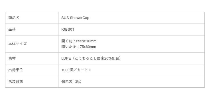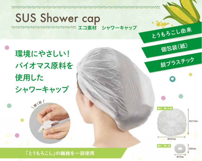 ・とうもろこし由来シャワーキャップ『SUS ShowerCap』:https://sus.i-goods.co.jp/products/sus-showercap