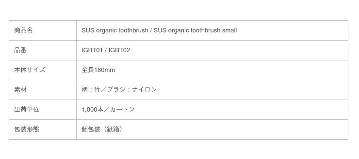 ・竹歯ブラシ『SUS organic toothbrush』:https://sus.i-goods.co.jp/products/sus-organic-toothbrush