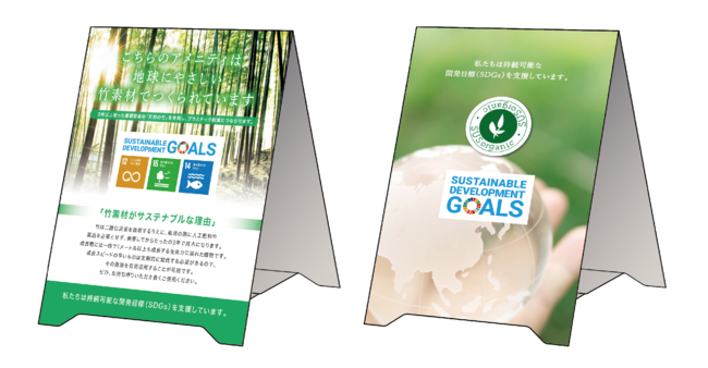 竹素材を使用した商品をご購入の際、「竹素材がなぜエコなのか」が説明された卓上POPを、ご希望のお客様にご提供します。SDGsを推進していることが一目で分かり、ブランディング向上にもつながります。