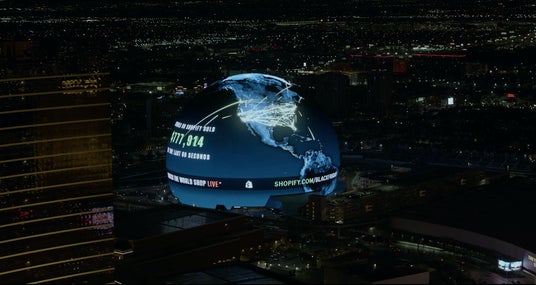 Shopifyでは今年のブラックフライデーに、ラスベガスを象徴する球体型のアリーナ施設Sphere(スフィア)のジャックを実施しました。今回のジャックでは、Shopifyがブラックフライデーに先駆け公開した世界中の商取引の様子がリアルタイムで分かるコンテンツ「Shopify Live Globe2024」から、リアルタイムで可視化したデータをSphereの球体ビジョンに直接ストリーミングするという、Sphere初の試みを行いました。さらにSphereで過去最長時間*を記録するジャックとなりました。