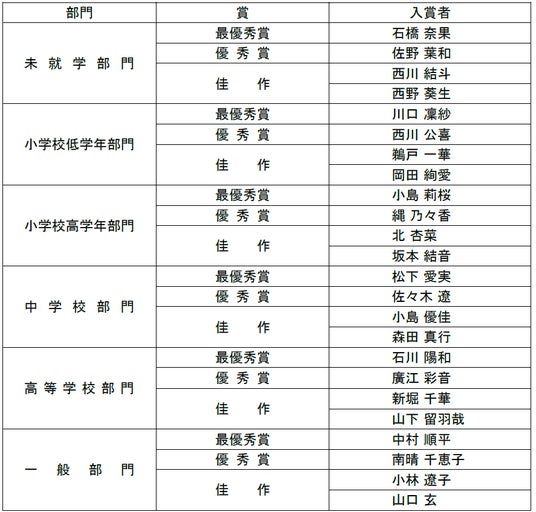 【募集部門】 未就学部門、小学校低学年部門、小学校高学年部門、中学校部門、高等学校部門、一般部門