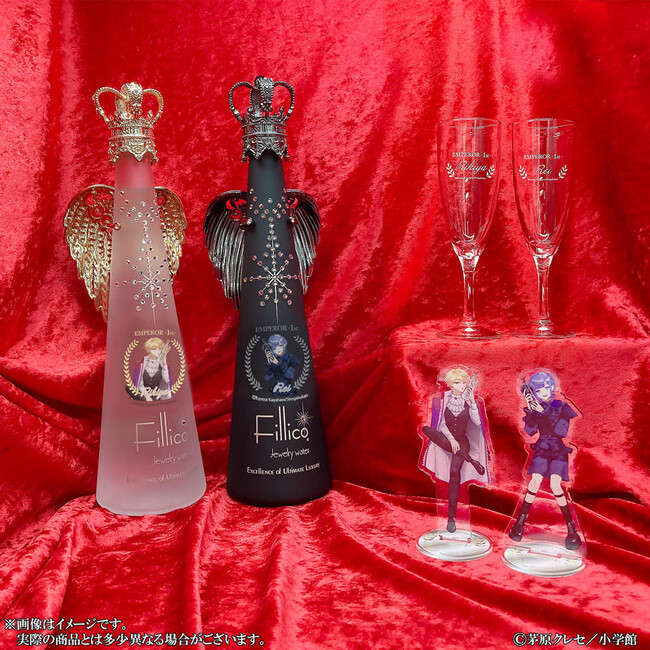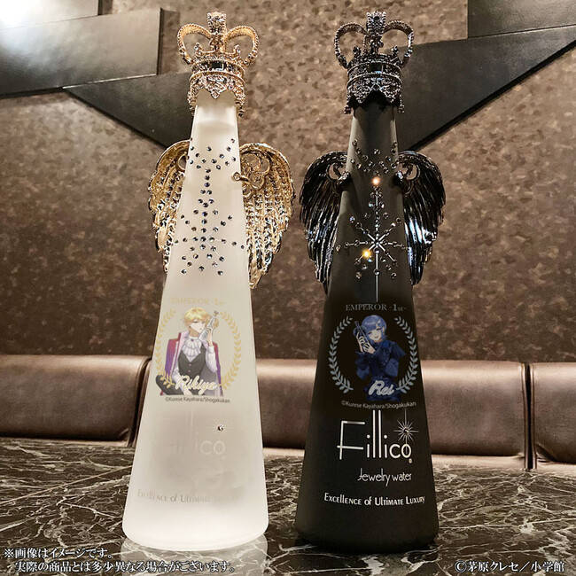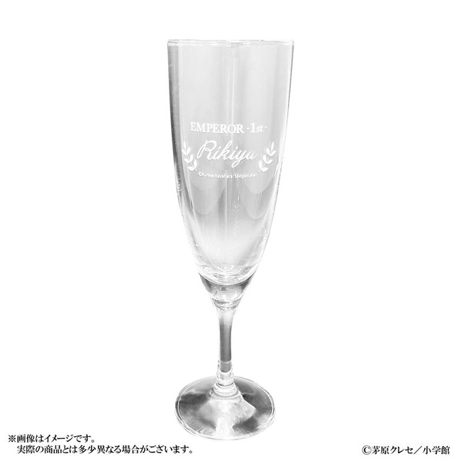 2人が所属するホストクラブ・EMPEROR 1stのロゴとリキヤ、レイの名前が入ったオリジナルシャンパングラス。