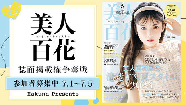 イベント入賞者は、『美人百花』の『Hakuna』タイアップページに出演することができ、美人百花10月号(9月12日発売)に掲載されます。