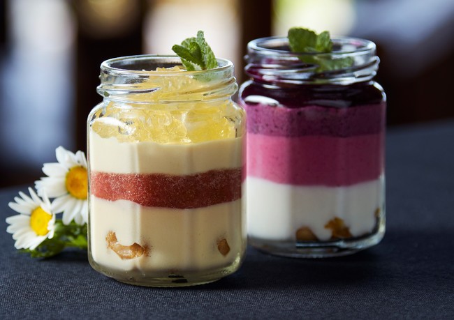 手作りジャムが人気の名店が4層の映えムースを製作。自家栽培ミントと特製ジュレをその場でトッピング。※実演 ※ジェイアール名古屋タカシマヤ限定
