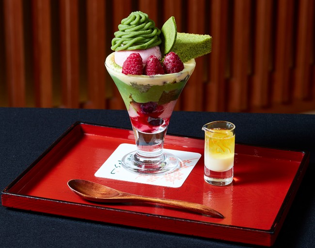 老舗の京飴屋が作る木苺や宇治抹茶モンブランクリームがのったパフェ。柑橘入り練乳ソースをかけて「味変」すれば最後まで飽きない美味しさ。※イートイン ※ジェイアール名古屋タカシマヤ限定