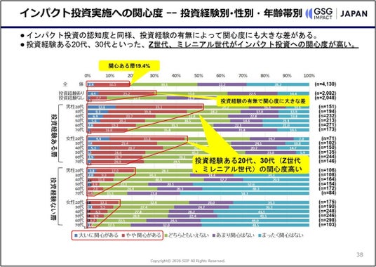 インパクト投資の認知度・関心度はいずれも、投資経験のある20代・30代(Z世代・ミレニアル世代)で高い傾向が確認されました。