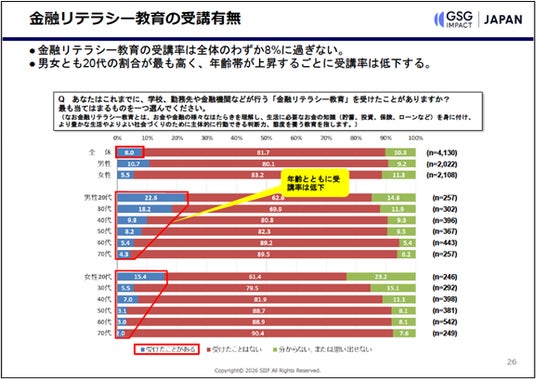 学校や勤務先、金融機関などが行う金融リテラシー教育について、受講経験がある消費者は全体の8%にとどまりました。