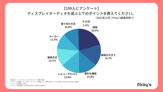 「Picky’s」は、インターネットショッピングにおいて、購入前に試せない・選ぶべきものがわからないという課題の解決を目標に、あらゆる商品のおすすめランキングや検証レビューを紹介するサイトです。このたびPicky’s(https://rentry.jp/note/)では、ディスプレイオーディオについてインターネット上でアンケート調査を行いましたので発表いたします。
