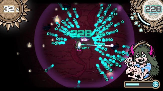 ▼ 襲い来る無数の敵をパリィで弾け!ゲージが溜まったらバーストで一掃、光を集めてナイトメアの闇を祓え!