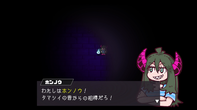 プレイヤーは悪夢に囚われた自身の「タマシイ」、そこに「ホンノウちゃん」と名乗る少女が現れる。