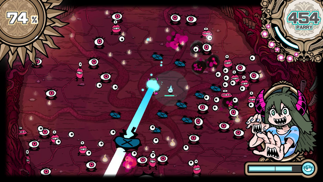 さらに、光を集めることで溜めたゲージを放つことで、一撃必殺の“バースト”が使用可能!ド派手な演出と共に、画面内の敵を一掃したときの爽快感はひとしお。つい身体が動いてしまうBGMとポップだけどちょい不気味なビジュアルにより彩られるこの悪夢とトラウマを、テンションぶち上げでなぎ倒しましょう!