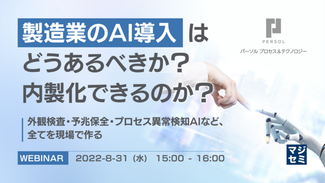 マジセミ株式会社は製造業のAI導入はどうあるべきか?内製化できるのか?というテーマのウェビナーを開催します。
