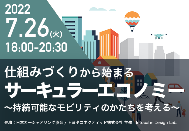 株式会社インフォバーン(本社:東京都渋谷区、代表取締役 会長:小林弘人、代表取締役 社長:田中準也、株式会社メディアジーン関連会社)のイノベーション事業創出支援部門であるIDL [INFOBAHN DESIGN LAB.](以下IDL)が、「仕組みづくりから始まるサーキュラーエコノミー:持続可能なモビリティのかたちを考える」と題し、来る【7月26日(火)18:00~】よりオンラインイベントを開催します。