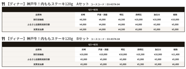 兵庫県内のステーキ店4店舗から選べるコースJR普通往復券とお食事がセットになったパックツアー♪ 兵庫を旅しようキャンペーン+を利用してお得にお食事が楽しめるプランです。※お申し込みは、2名以上からになります。