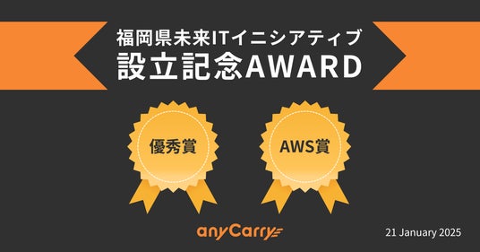ラストマイル物流に特化した物流ソリューション事業を展開する株式会社エニキャリ(以下当社)は、2025年1月21日(火)に開催された福岡県未来ITイニシアティブ主催の「福岡県未来ITイニシアティブ設立記念アワード」で、「優秀賞」と「AWS賞」をダブル受賞しました。
