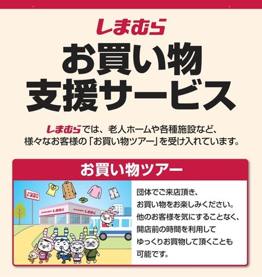株式会社しまむら(本社所在地:埼玉県さいたま市大宮区北袋町1-602-1、代表取締役:鈴木 誠)は、2月21日(水)より全国のファッションセンターしまむら(一部店舗除く)で、衣料品のお買い物支援サービス「しまサポ」をスタートします。