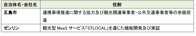 令和4年度に五島市が取り組みました「五島版観光型MaaS開発事業」の一環として、令和5年2月から五島列島における観光型MaaS「STLOCAL」の導入及び利活用を開始しました。本サービスの継続的な運営、及び利便性向上の実現のため、下記項目に関する連携・協力を行います。