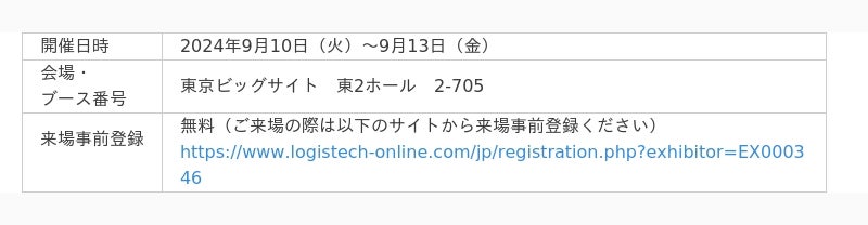 2024年9月10日(火)から13日(金)まで東京ビッグサイトで開催される「国際物流総合展2024」に出展し、搬送ロボットの展示や物流倉庫・物流センターの自動化・全体最適化を実現するさまざまな最先端のソリューションの紹介をします。