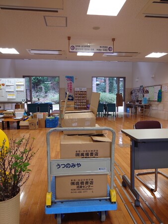 石川県を中心に書店を展開しているうつのみやは、今回の震災で帳合店8店が全壊する被害に遭っている。外商活動で教科書の取り扱いもあり、地域と深く関りがあることから、避難生活中の子供たちを「応援したい」という宇都宮元樹社長と清水社長両者の思いで実現した。