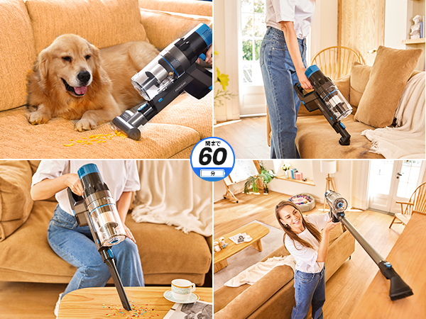 外観が綺麗で、35000 Paパワフルな吸引力と450Wブラシレスモーターで深層部の汚れまで逃げさず吸い込みます。着脱式パッテリー、50分の連続使用時間で一気に家中を徹底的に掃除することができます。また、隙間ノズル、丸ブラシ、布団用ブラシと組み合わせ、一台で部屋中の汚れをまとめて綺麗にします。掃除が苦手な方や普段掃除する時間がない方にとってはまさに神器のようになります。