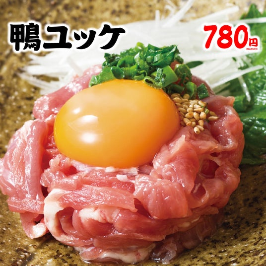 鴨ユッケ、鴨もも肉のレア焼き、鴨の串カツ、鴨の鉄板生つくねなどを揃えております。また、国産鴨を生活価格でお届けするという創業者の強い信念も現れたものになっております。