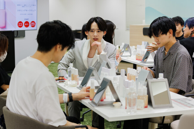 USUKEさんは「毛穴とか色ムラみたいな肌悩みもちゃんとカバーしてくれる。なのに、メイクしている感がいい意味でなく素肌がキレイって錯覚しちゃうような。本気でオススメの商品で、発売前なのに何個も使い切っちゃいました」、翔貴さんは「カバー力や仕上がりに加えて明るい色設計もポイント。商品の使い方は、普通のリキッドファンデーションと大きな差はないので難しいテクニックもなく、使いやすいです。発売前からかなり気に入って使っていたし、何回もリピートしていたアイテムだったので、こうやって今日みんなに良さを伝えられて嬉しいです」とコメントをいただきました。