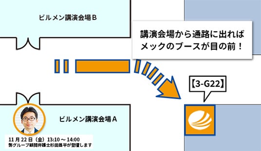 11月22日には、メックグループのブースにも杉田弁護士が立ち寄られます。