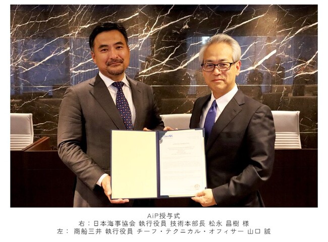 株式会社商船三井(社長:橋本 剛、本社:東京都港区、以下「当社」)は、三菱重工グループの三菱造船株式会社(社長:北村 徹、本社:神奈川県横浜市、以下「三菱造船」)と開発に取り組んでいるアンモニアFSRU(Floating Storage and Regasification Unit:浮体式貯蔵再ガス化設備、註1)について、一般財団法人日本海事協会(以下「日本海事協会」)から基本設計承認(Approval in Principle:以下、「AiP」)を取得しました。