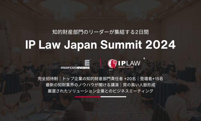 マーカス・エバンズ・イベント・ジャパン・リミテッド (本社: 英国/ 日本支社代表: 雪下 大輔、以下「マーカスエバンズ」) は、11月19日 (火) ~20日 (水) までの2日間ホテル椿山荘東京にて、知的財産部門向けのビジネスサミット『IP Law Japan Summit』を開催すると発表しました。