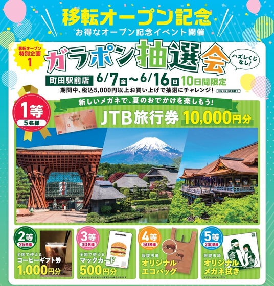 眼鏡市場は、「都会と自然のバランスがちょうどいい」と、ファミリー層を中心に「住みたい街」として注目が集まっている東京都町田市に「眼鏡市場 町田駅前店」を2024年6月7日(金)に移転オープンします。同店は、移転に伴い小田急町田駅から徒歩3分と、さらにアクセスしやすくなりました。