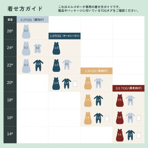 レイヤーは1枚で着たり、スワドルやスリーパーの中に重ねて着用したりすることができるアイテムです。着せ方ガイドに従って、室温に合わせた最適なレイヤーを選ぶことができます。