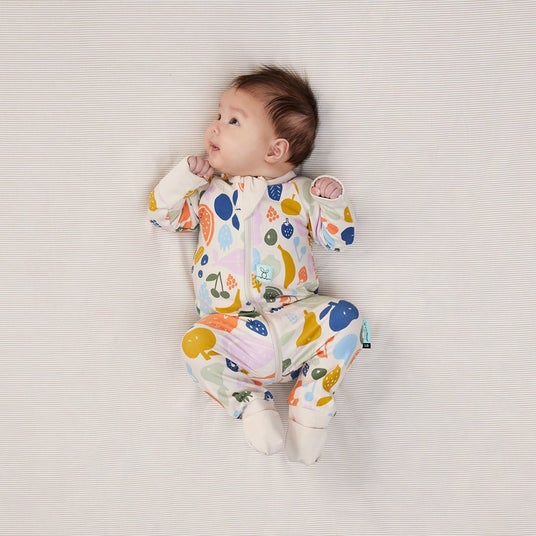 0.2TOGのレイヤーショートスリーブは薄手のロンパースで、気温が高い時は1枚で、涼しくなってきたらスワドルやスリーパーの下に着て快適に過ごせます。背中まで届く3WAYジッパーを採用しているので、おむつ替えもスムーズに行えます。