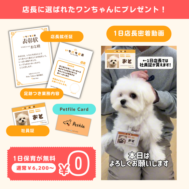 ・1日店長としてお越しいただい際に無料でワンちゃんをお預かり