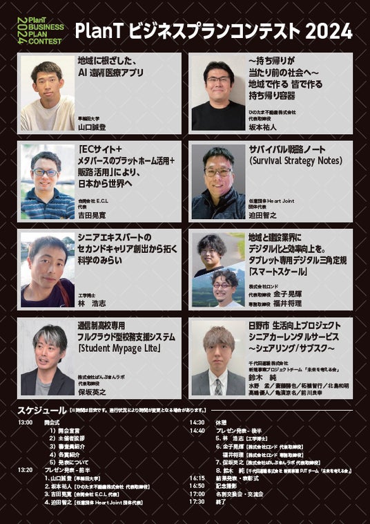 また、当日コンテスト会場またはライブ配信により発表の様子をご覧になる方を募集しています。観覧希望の方は事前にお申し込みください。詳細はPlanTホームページをご覧ください。