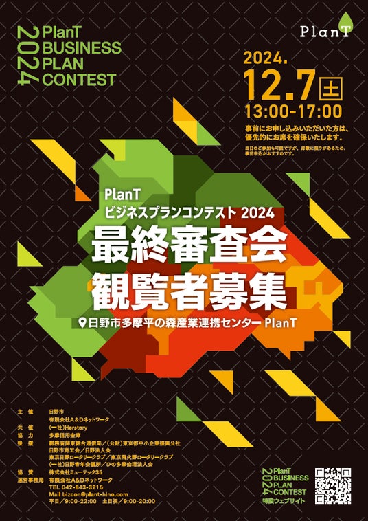 PlanT(日野市多摩平の森産業連携センター)で、市内の創業機運醸成と普及啓発を目的とした「PlanTビジネスプランコンテスト2024」の最終審査会を開催します。