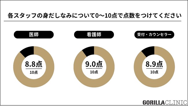その結果、医師・看護師・カウンセラーの全カテゴリーで、平均9点という非常に高い評価を得られました。