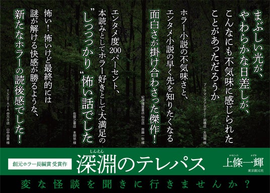 未来の古典となりうる新しいホラー小説の傑作を求めて創設された〈創元ホラー長編賞〉。その受賞作として早くから大きな注目を集めていた『深淵のテレパス』がついに東京創元社から刊行されました。