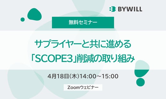 企業の脱炭素コンサルティングやカーボンクレジットの創出支援・売買を行う株式会社バイウィルは、無料セミナー「サプライヤーと共に進める『SCOPE3』削減の取り組み」を2024年4月18日(木)にオンラインにて開催いたします。