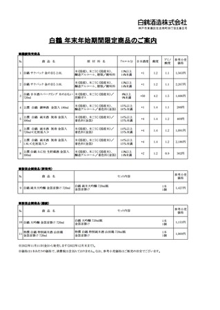 白鶴酒造は、年末年始の食卓を彩る期間限定商品を、2022年11月11日(金)から12月末まで全国で期間限定発売します。