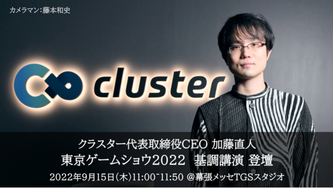 メタバースプラットフォーム「cluster」を運営するクラスター株式会社(本社:東京都品川区、以下「クラスター」)の代表取締役CEO 加藤直人は、2022年9月15日(木)に幕張メッセより配信される「東京ゲームショウ2022」の基調講演に登壇いたします。