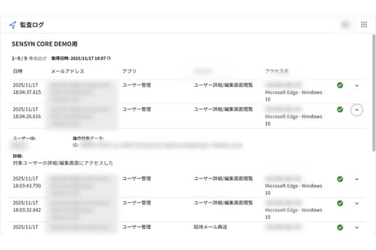 「誰が何をしたか」というオペレーションログを残す仕組みと、そのログを統合的に確認するためのユーザー画面が提供されます。