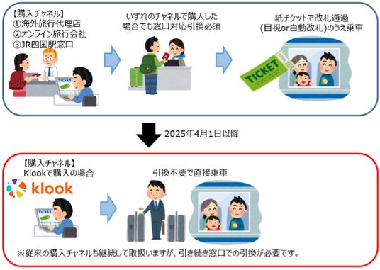 四国旅客鉄道株式会社(本社:香川県高松市 代表取締役社長:四之宮 和幸 以下、JR四国)とKlook Travel Technology(本社:香港 共同創業者兼CEO:Ethan Lin 以下、Klook)は、相互に連携し、JR四国の訪日外国人向け特別企画乗車券「ALL SHIKOKU Rail Pass」におけるQRコード(※)を使用したチケットサービスを開始します。オンラインで購入後、紙チケットに引換不要で、交通機関に直接乗車できる訪日外国人向け周遊パスの自動改札対応QRチケットサービスの提供により、訪日外国人旅客の利便性向上と共に、四国へさらに多くの訪日外国人旅客が訪れていただけるように取り組みます。