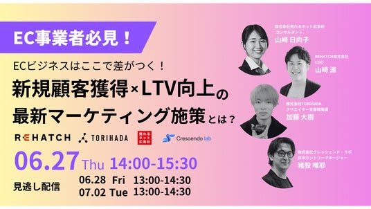 インフルエンサーを活用したショートムービーマーケティング事業を行う株式会社TORIHADA(本社:東京都渋谷区、代表取締役社長:若井 映亮)は、2024年6月27日(木)に開催されるウェビナー「ECビジネスはここで差がつく!新規顧客獲得×LTV向上の最新マーケティング施策とは?」に登壇いたします。