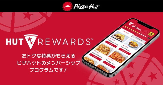 「HUT REWARDS(ハットリワード)」は、ピザハットが提供する会員様向けロイヤルティプログラムです。カットしたピザの1ピースをイメージした言葉である「スライス」をポイントの名称・単位としており、購入金額に応じたポイント=「スライス」を取得。スライスを貯めて商品と交換することができる、超おトクなプログラムとなっております。
