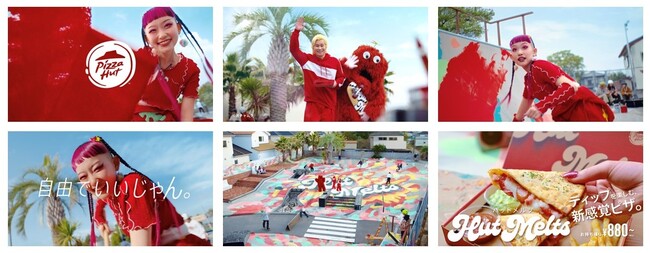 Q. 今回のCM撮影は3人の初コラボとなりましたが、お互いの印象は?カズレーザーさん:平均年齢がグッと若くなりましたね。こんなに明るい人がまだ世の中にいたとは!詩羽さん: ありがとうございます。個性の強いお二人に囲まれて、このような空間に参加できて嬉しいです。Q. CM撮影時、印象に残ったシーンは?詩羽さん:ローラーでバーッと(ウォールアートを)描くことって普段ないから、この機会に経験できて楽しかったです。好きな色をベッタベタに塗ってもいいっていう快感がありました。あとは、ムックさんが滑り落ちるシーンで、安全に綺麗に滑り落ちたのが凄かったです。カズさんとムックさん、お二人とも身体が大きくて羨ましかったです。どちらも可愛いし、かっこいいなって思いました。Q. 新感覚のおひとりさまピザ「Hut Melts」を食べてみていかがでしたか?カズレーザーさん:あのバカ美味いやつですね!具もこぼれ落ちないし、すごく食べやすかったです。詩羽さん:ピザ単体でも美味しいのに、ディップで「味変」もできるので、美味しさ2倍で良かったです!Q. 今回のTVCMは、「自由でいいじゃん。」がキャンペーンメッセージでしたが、撮影時に“自由”を感じるシーンはありましたか?詩羽さん:こういう広々としたスケボーパークのような空間で食べると遊び心が生まれるというか、これから何しようかな?今日は何しようかな?などいろんなことを想像しながら、楽しくごはんが食べられますよね。そういうところが自由だなって感じました。Q. 詩羽さんは新たにピザハットブランドアンバサダーの仲間入りをしました。今後の意気込みを教えてください。詩羽さん: ピザハットさんのブランドアンバサダーに参加させていただくことになり、いつもよりきっとパーティー気分なことが増えるのかなって思っています。ピザって食べるだけでハッピーになれると思うんですよ。誰かと一緒に食べたり、自分一人でも食べられて、日常が少しずつ楽しくなるというか。だからいっぱいピザを食べて、でも太らないようにセーブしながら、美味しいものを皆さんにたくさんお勧めしていけたらなと思っています。Q. 最後にCMを見てくれている方へメッセージをお願いします。カズレーザーさん:ぜひ皆さんも「Hut Melts」を1度と言わず、2度3度、15回ぐらい食べていただければと思います!ムックさん:いっぱい食べてくださいね~!詩羽さん:CMではペンキを塗ったり、カズレーザーさん、ムックさんと一緒に楽しんだり、スケーターの子どもたちがたくさん滑っていて、“自由さ”が溢れている映像になっています。私自身、自分の個性やアイデンティティを大事にしたいという思いを強く抱えているので、ありのままの姿でCMに出演できてとても嬉しかったです。ディップして食べるピザというのも、今まで私の中ではアイデアがなかったものなので、みんなに新しいものをたくさん食べていただきたいですし、今回のCMを通してピザハットの良さが伝わったら嬉しいです。