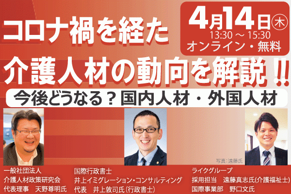 名 称:コロナ禍を経た介護人材の動向を解説!!~今後どうなる?国内人材・外国人材~
