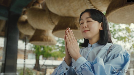 新CMの舞台は、神々の国と呼ばれる島根県の出雲。春を感じさせる淡いブルーの衣装に身を包んだ浅田真央さんが、日本最古の神社の一つとされる出雲大社を訪れるシーンから始まります。参拝の後に向かったのは、出雲大社の門前に佇む老舗旅館「竹野屋」。今回のCMでは創業から140年以上も伝統を守り続けている竹野屋で撮影することで、「未来へつなげること」をテーマにサステナビリティに取り組む企業姿勢を表現しました。